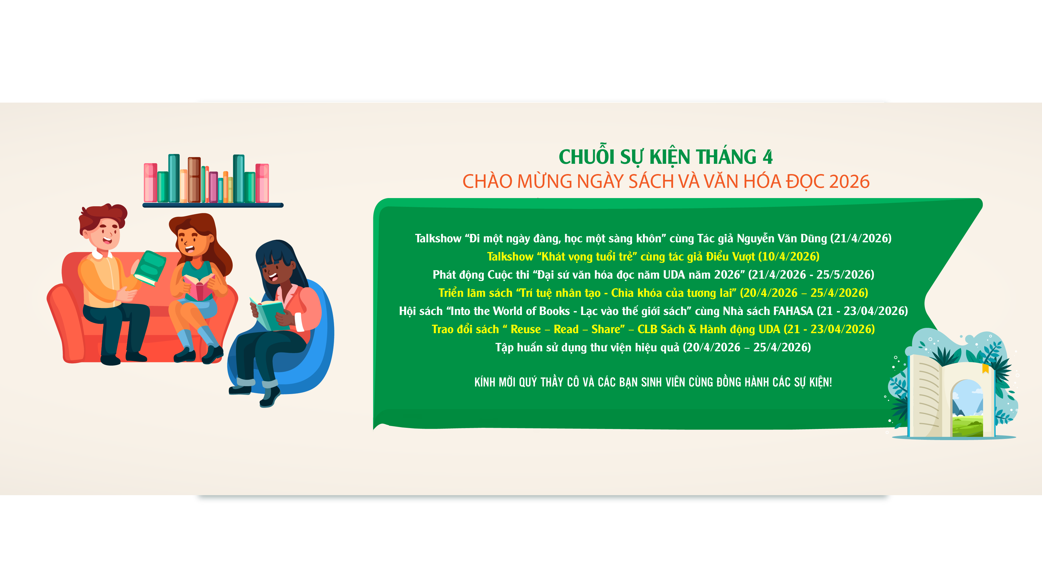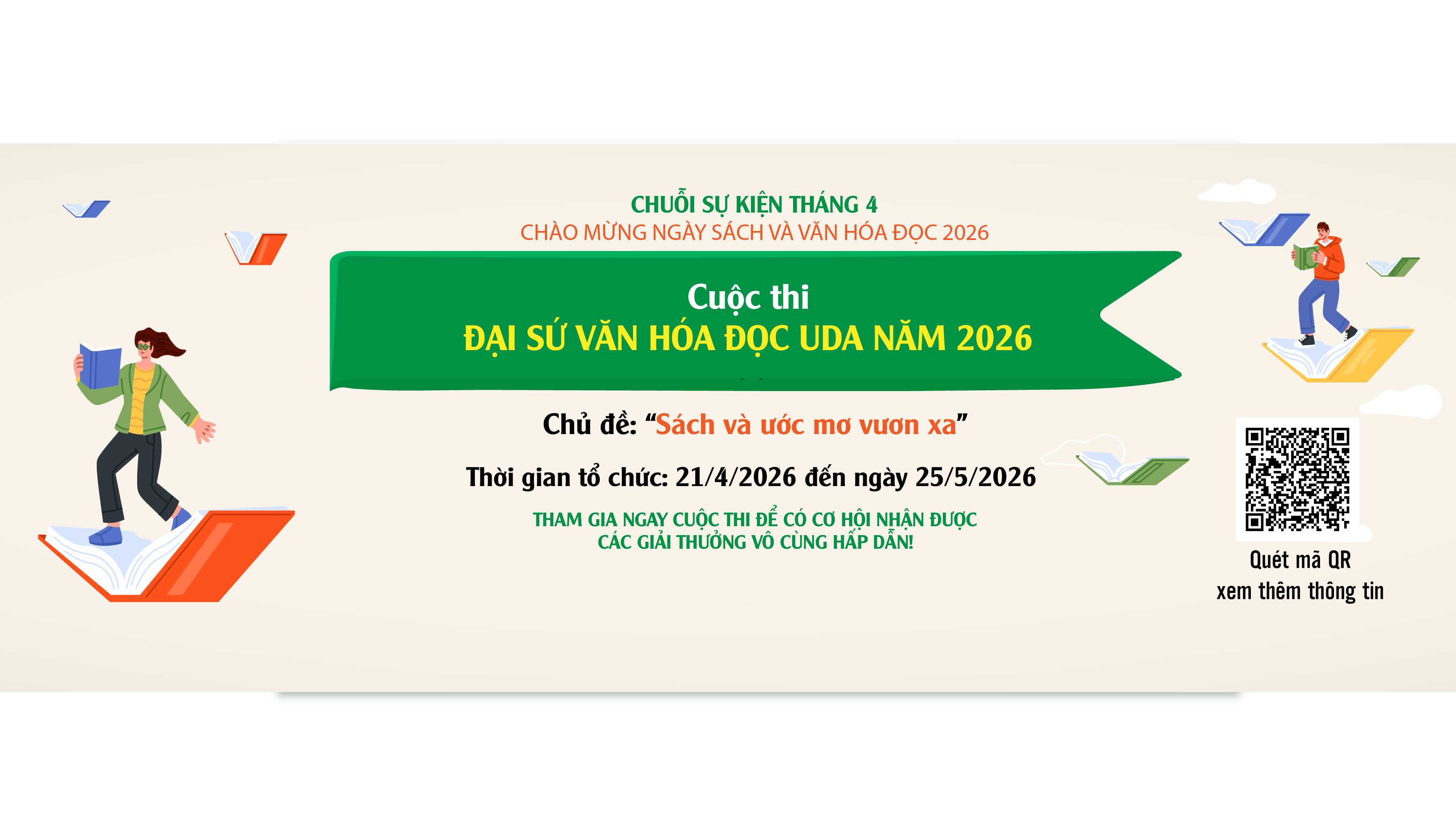 Cuộc thi Đại sứ Văn hóa đọc UDA năm 2026 diễn ra từ ngày 21/4/2026 đến ngày 25/5/2026.