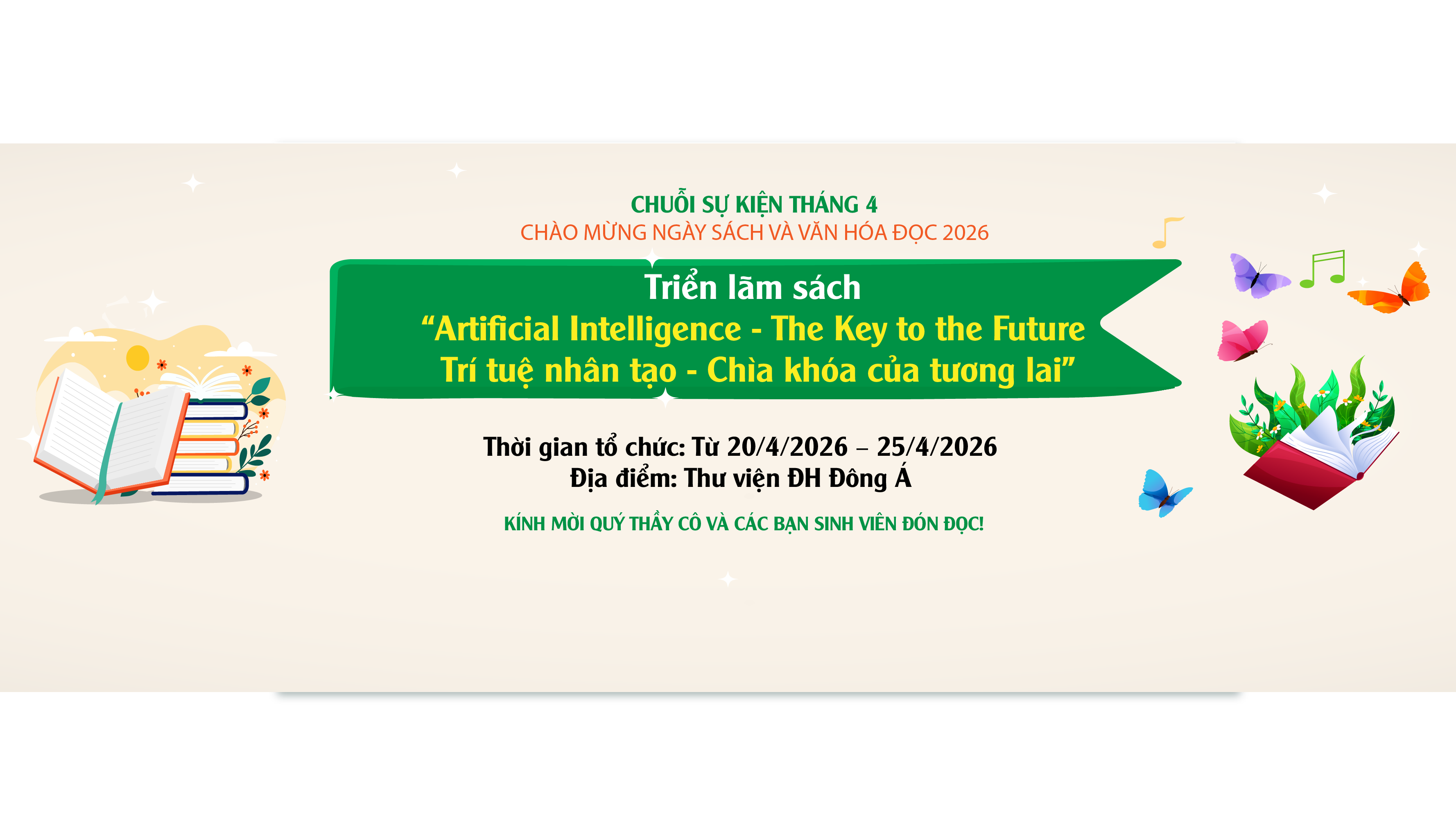 Chuỗi sự kiện do Thư viện Trường Đại học Đông Á tổ chức, diễn ra từ ngày 20/4/2026 đến 25/4/2026, với nhiều hoạt động phong phú, hấp dẫn tại ...