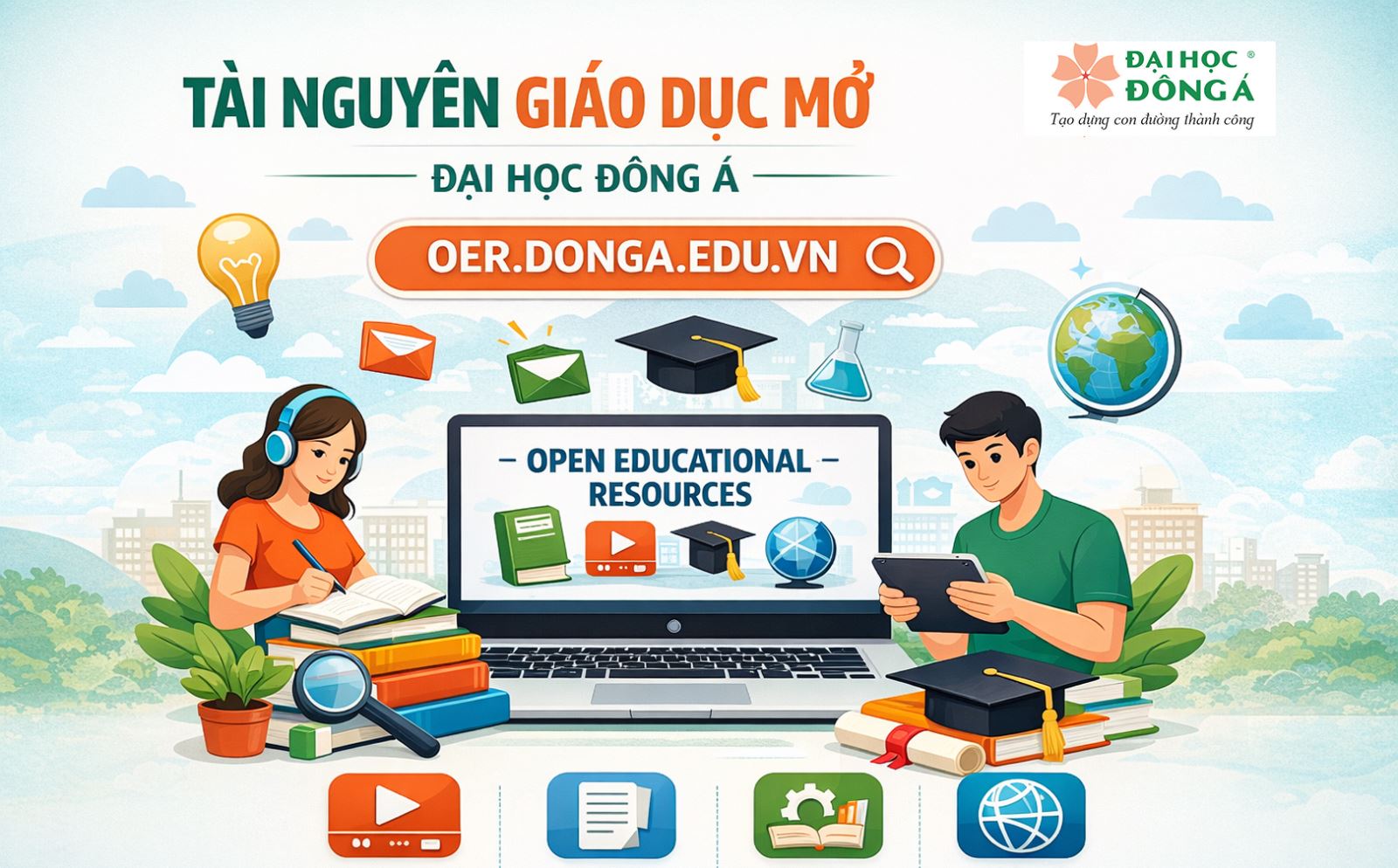 Nhằm thúc đẩy chia sẻ tri thức và phát triển hệ sinh thái học liệu mở trong giáo dục đại học, Trường Đại học Đông Á đã triển khai Website Tài nguyên Giáo dục Mở (OER) tại địa chỉ: https://oer.donga.edu.vn/. Đây là nền tảng số giúp giảng viên, sinh viên và cộng đồng học tập dễ dàng tiếp cận các nguồn học liệu chất lượng, phục vụ cho hoạt động giảng dạy, học tập và nghiên cứu.